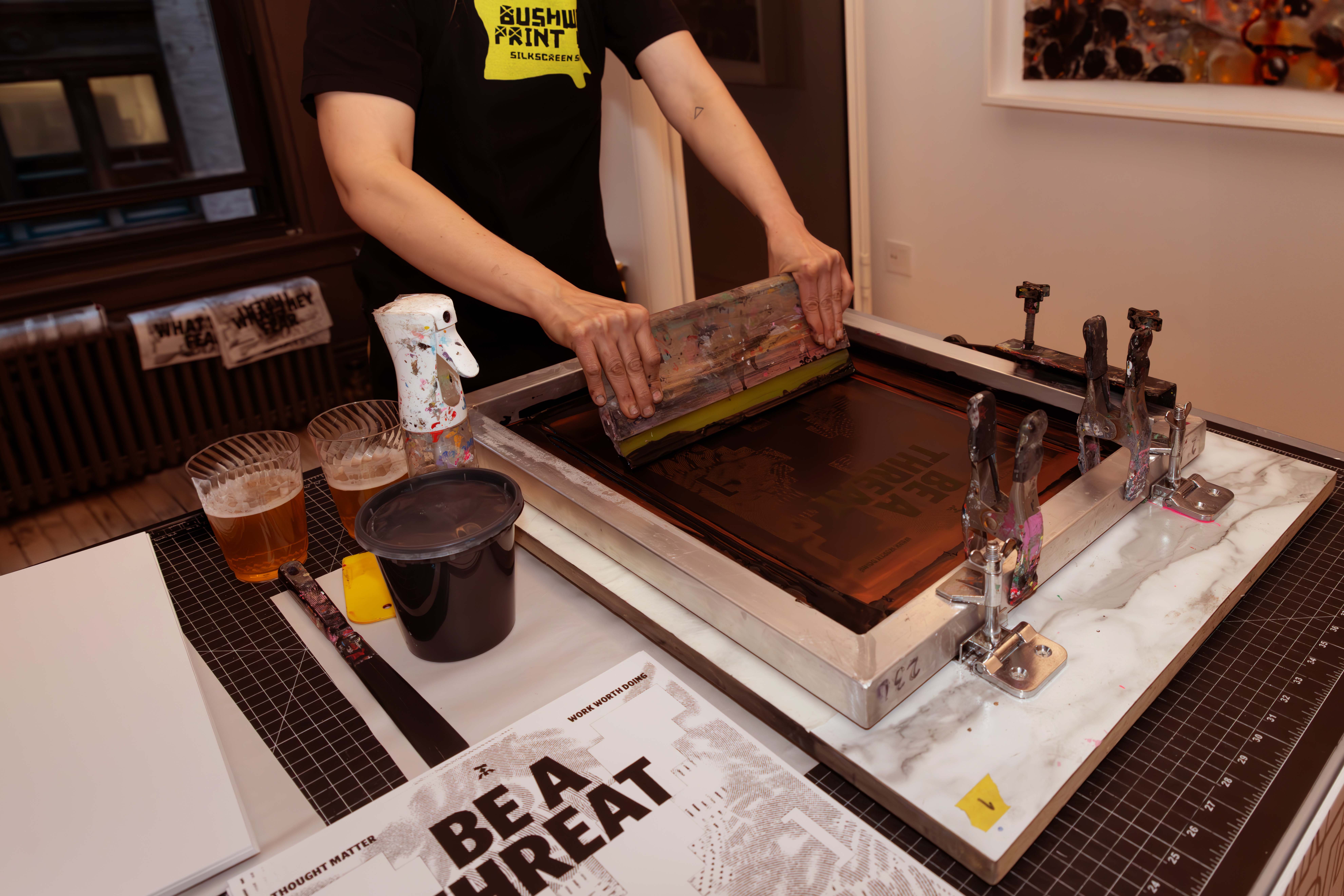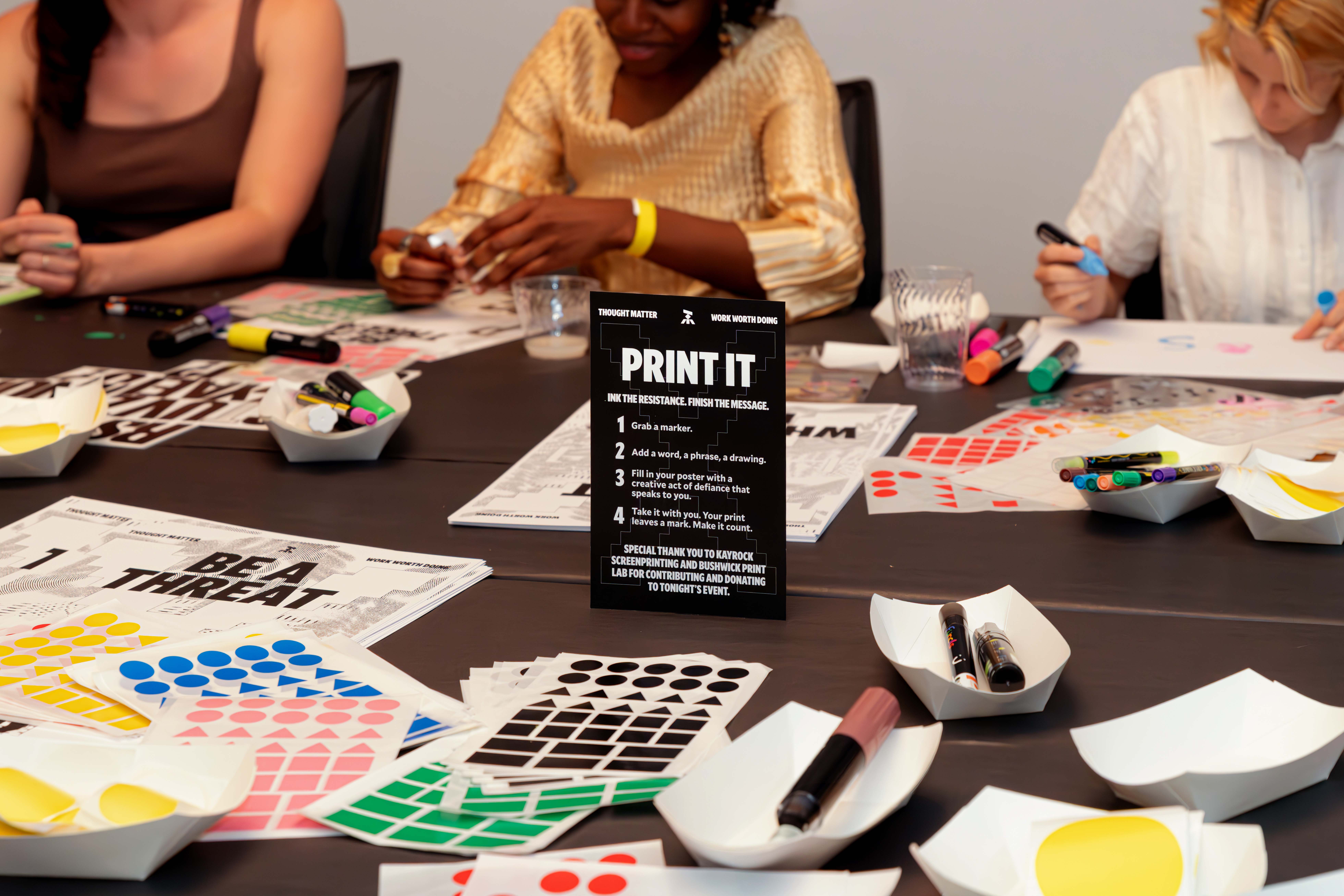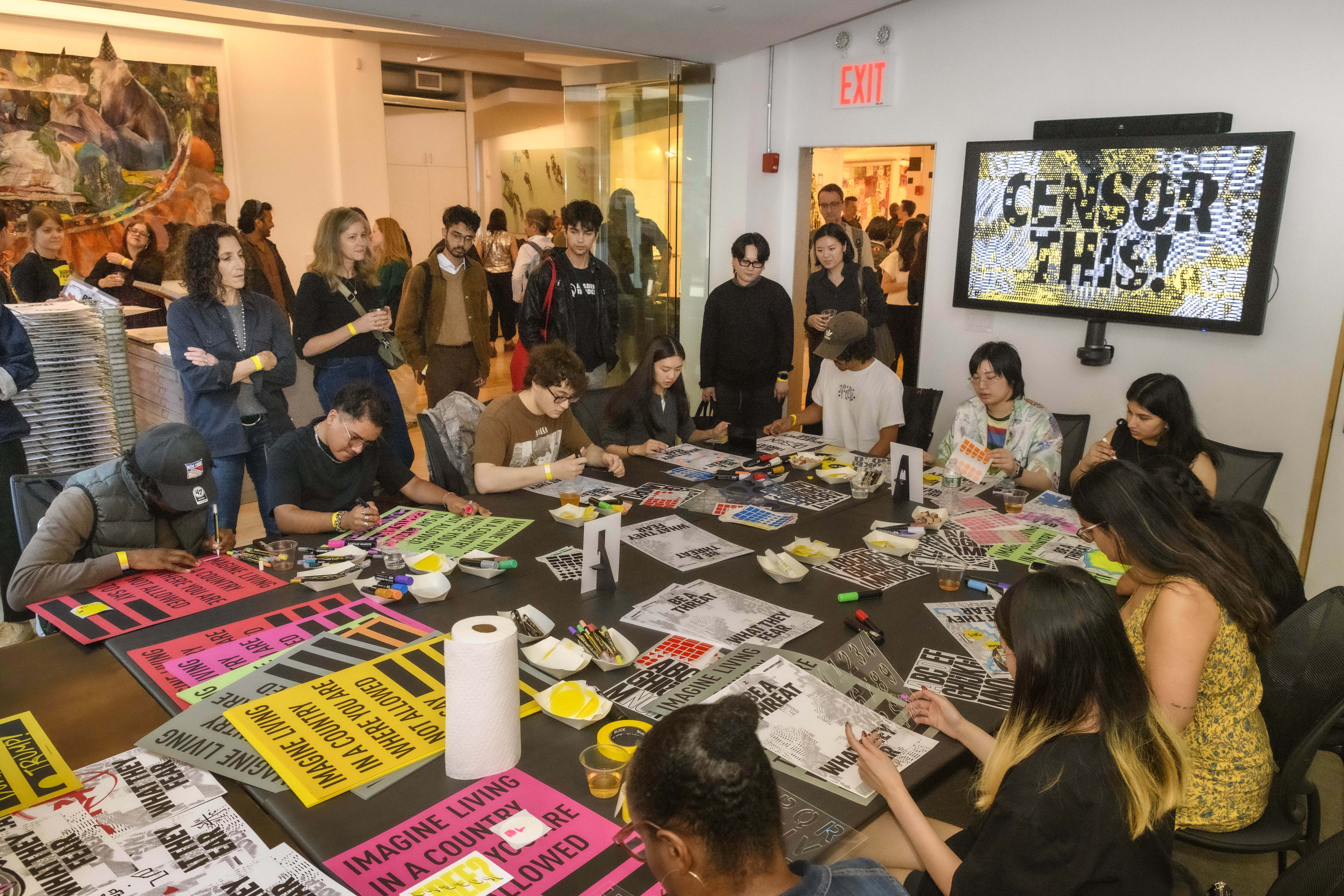 Attendees produced posters bearing declarations of their own artistic resistance, which were printed on-site through a live screen-printing process by Bushwick Print Lab.