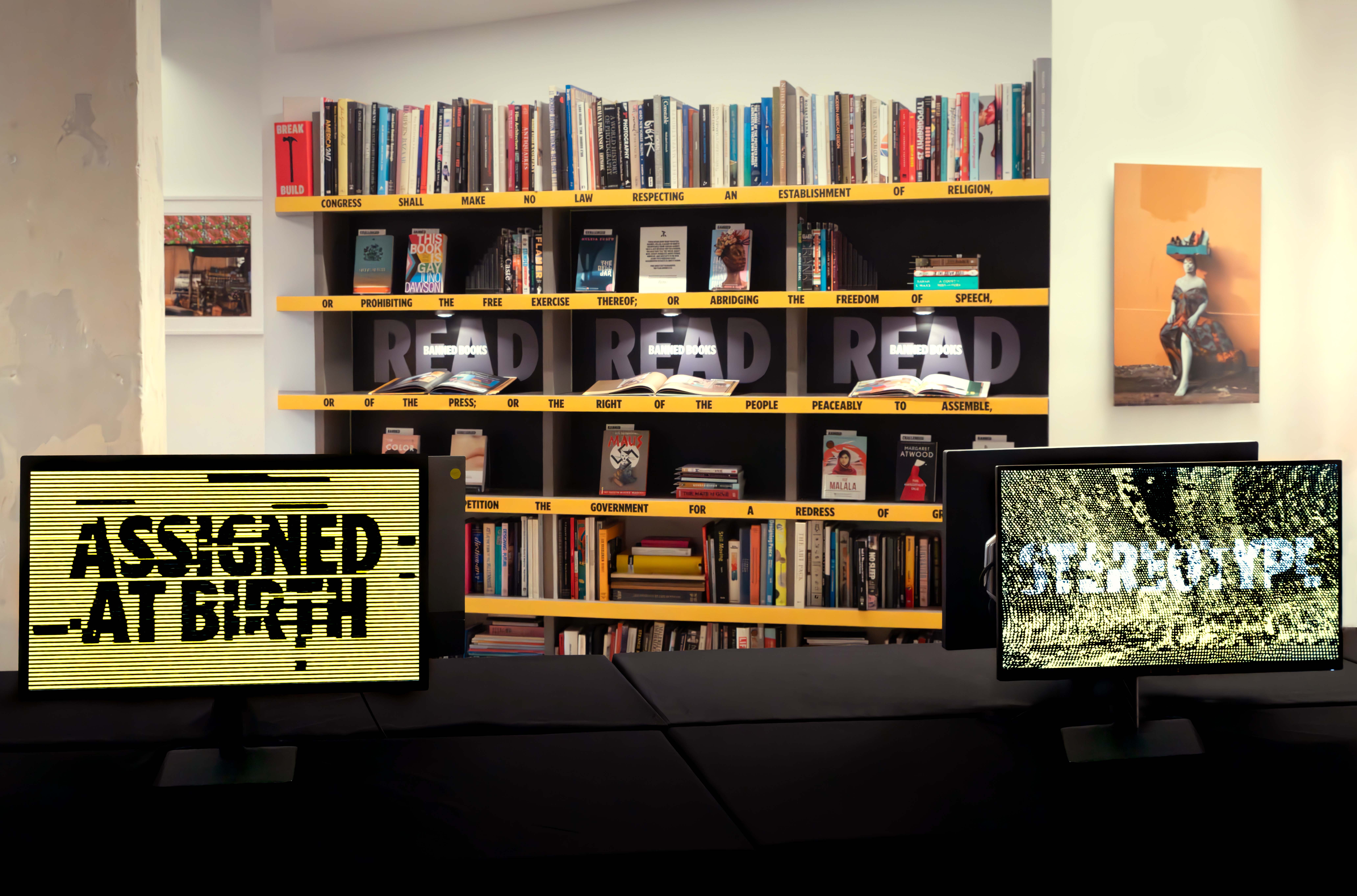 In the opposing corner, stood the Dead Library: a solemn installation featuring an urn encircled by withered flowers and shredded book pages, serving as a tribute to influential authors, works, and narratives now under threat of removal through local and nationwide bans.